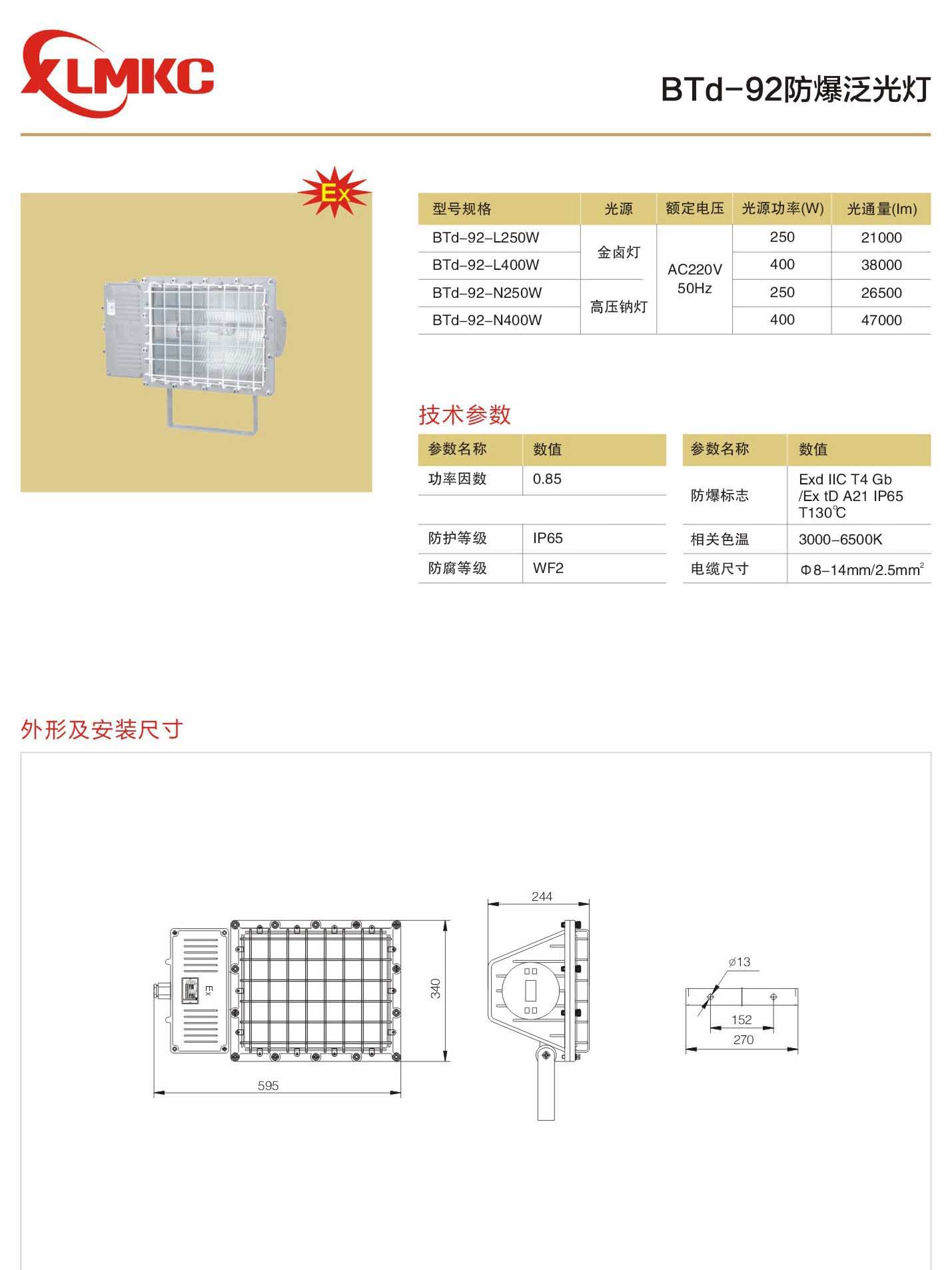2.采用高光效、長壽命的氣體放電燈泡和高反射率鏡面反光鏡,照明范圍大、亮度高;金鹵燈和高壓鈉燈兩種燈泡及多種功率可根據(jù)工作環(huán)境、照明特性和光強(qiáng)度的實際需要選配。